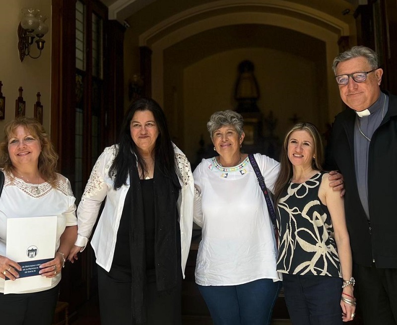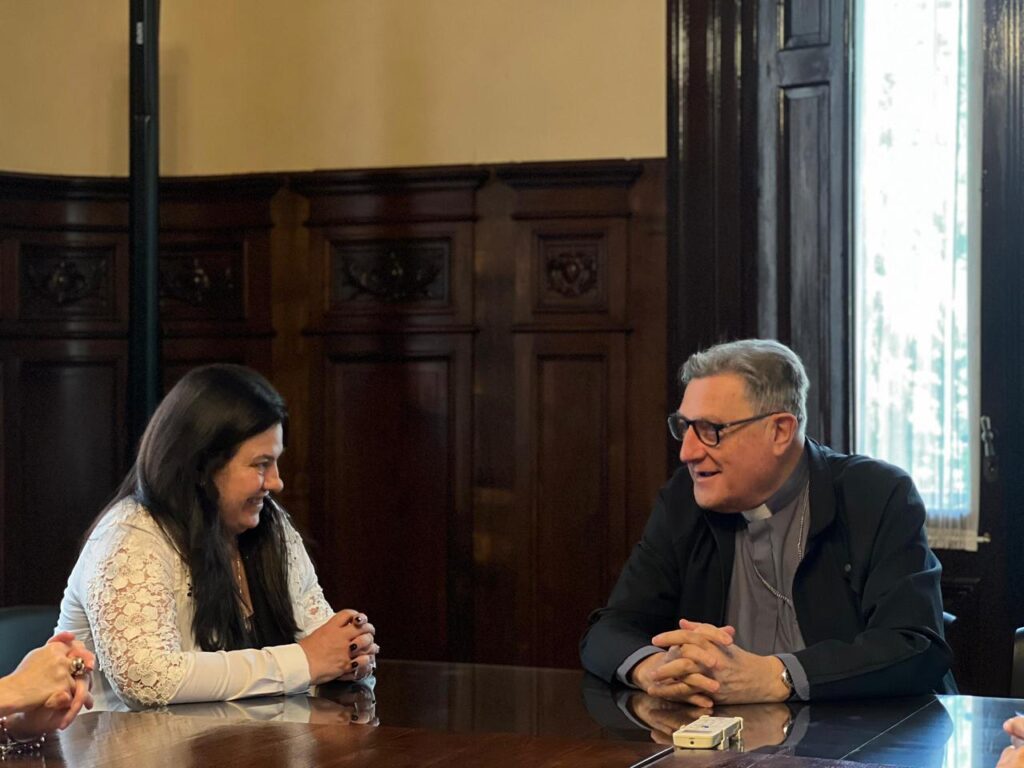 La diputada provincial Fernanda Castellani mantuvo un encuentro con el Arzobispo de Rosario, Monseñor Eduardo Eliseo Martín, acompañada por un grupo de mujeres de Colonia Medici, para reflexionar sobre el valor espiritual, histórico y comunitario de la Parroquia María Auxiliadora, un templo centenario que ha acompañado la vida de generaciones en la región.