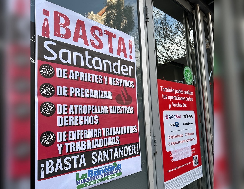 En ese marco, la Asociación Bancaria, bajo el lema “Basta Santander”, exige el cese inmediato de las prácticas que vulneran los derechos laborales y reclama la apertura de un diálogo efectivo con las autoridades de la entidad. Según denunció el sindicato a nivel nacional, el banco ignora los reclamos de los trabajadores y contradice los discursos de su presidenta ejecutiva, Ana Botín, quien desde España promueve conceptos como la “reconversión laboral” y el “progreso de las personas”.